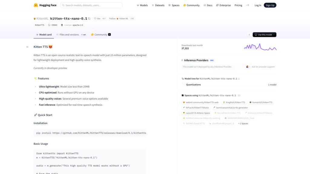 Me encanta que esté desarrollado por KittenML y que esté disponible en Hugging Face, una plataforma que ya todos conocemos y confiamos. La síntesis vocal que ofrece es fluida y natural, algo fundamental en aplicaciones como asistentes virtuales o herramientas de accesibilidad. 🎙️💬